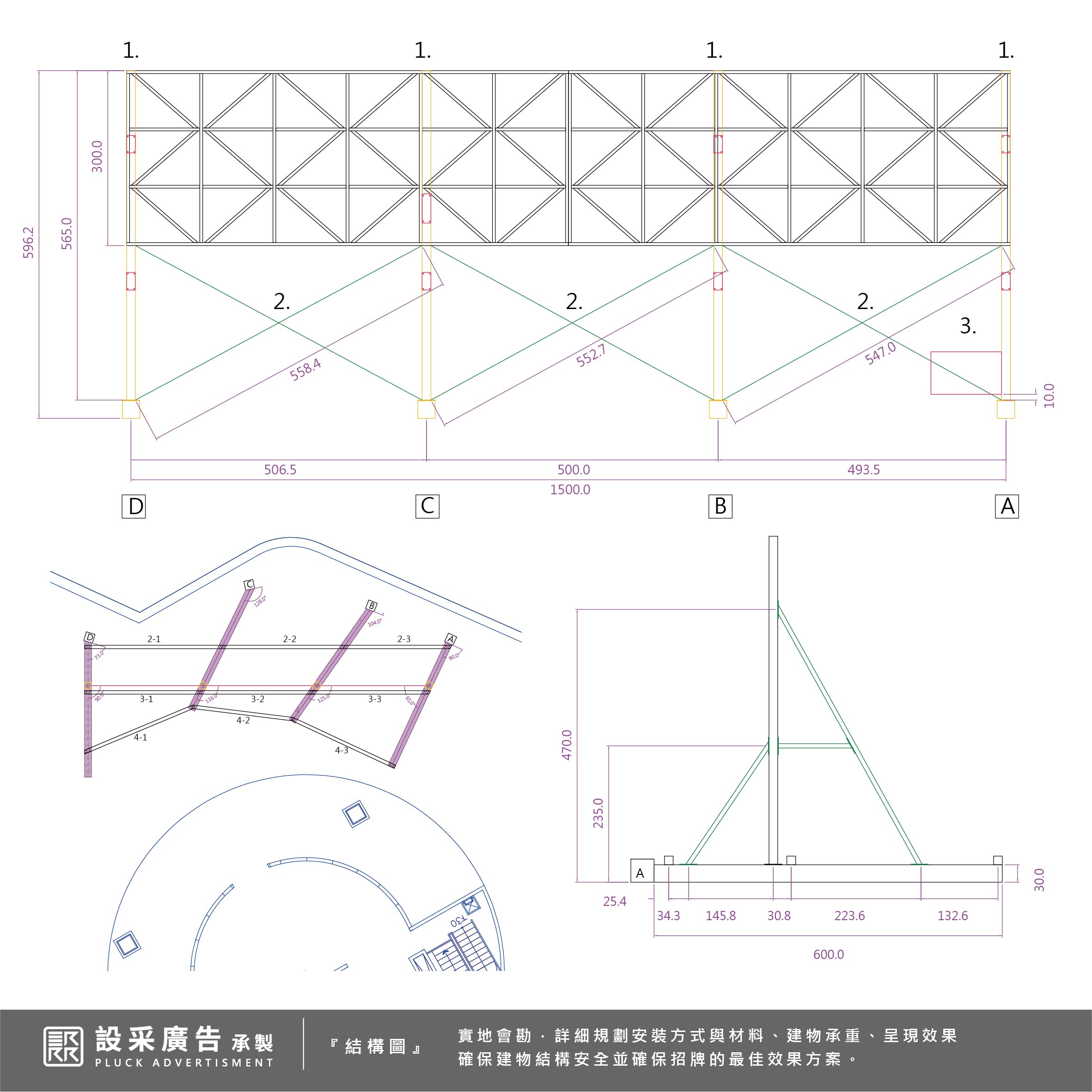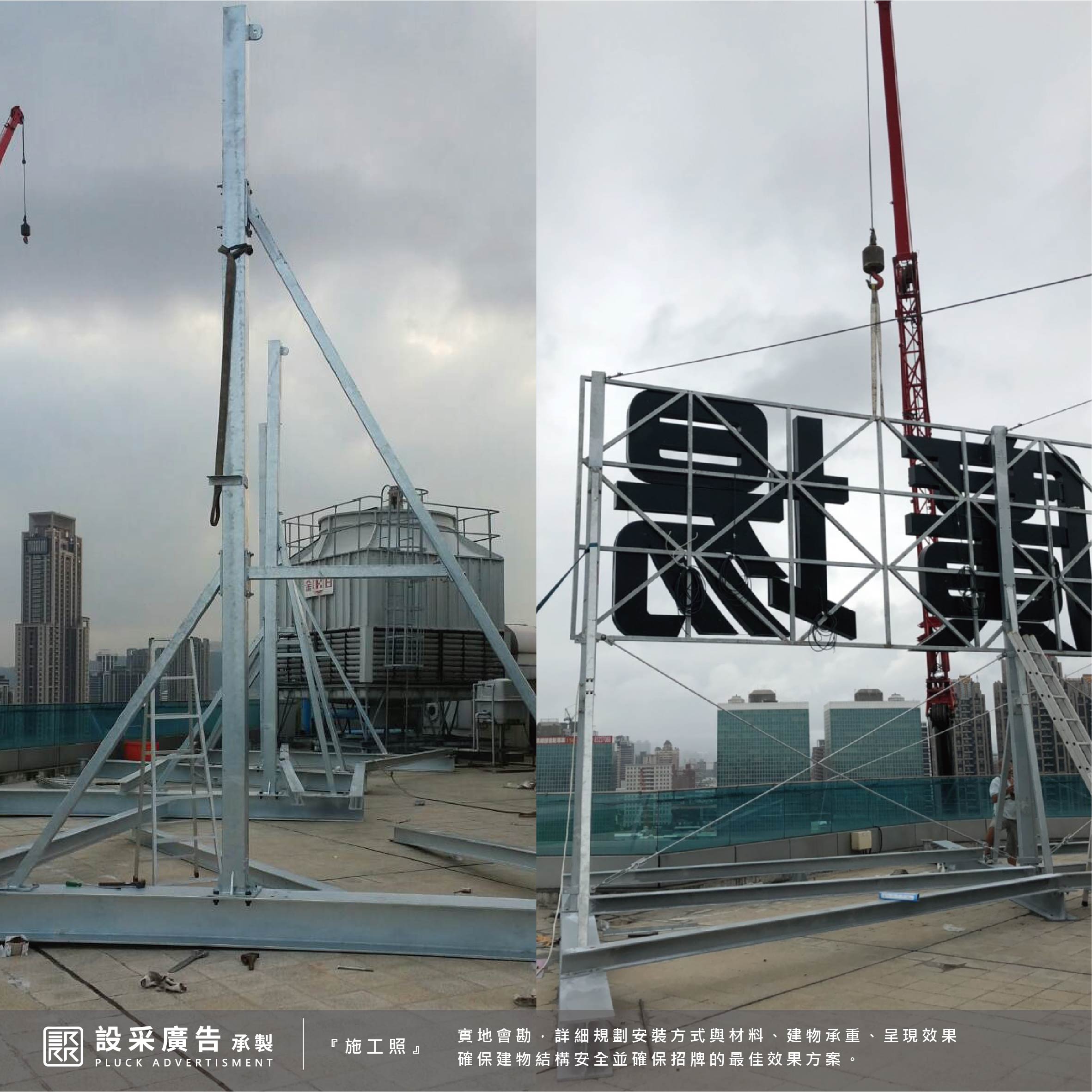 本次合作也是設采招牌工程團隊引以為傲的成果之一,歷時兩個多月的討論、溝通、場勘丈量、定案、施作,其中最重要的必須考量到頂樓的受風面及樓層承載量,才能打造出堅固又安全的大型廣告招牌。